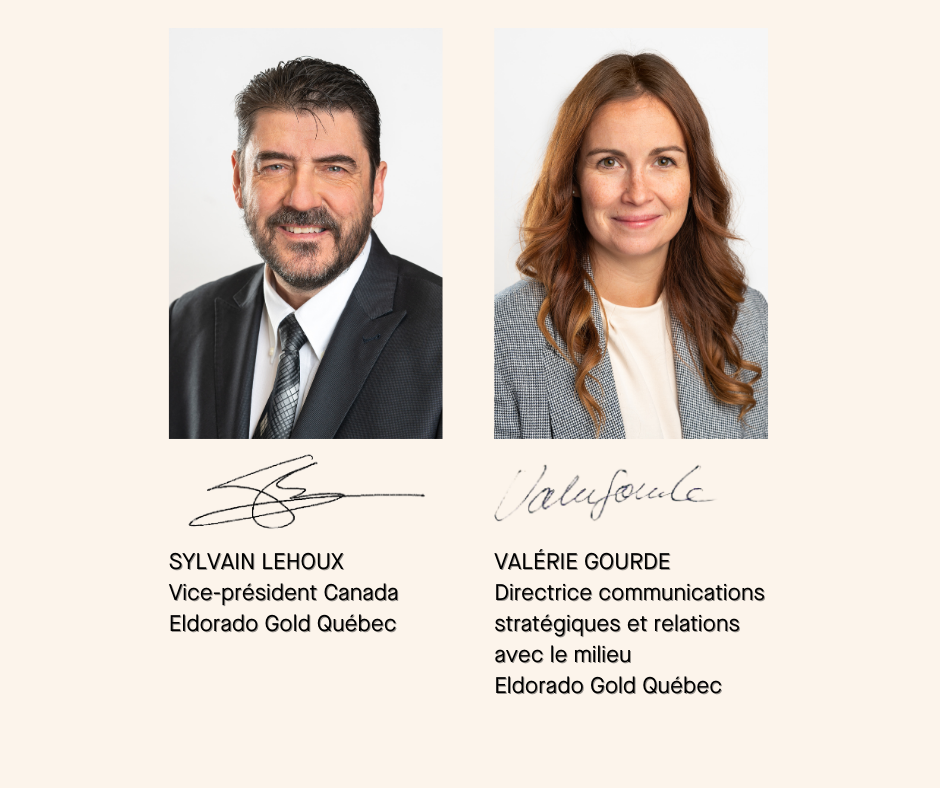 Ces actions démontrent l’engagement d’Eldorado Gold Québec envers le développement durable et la responsabilité environnementale.
