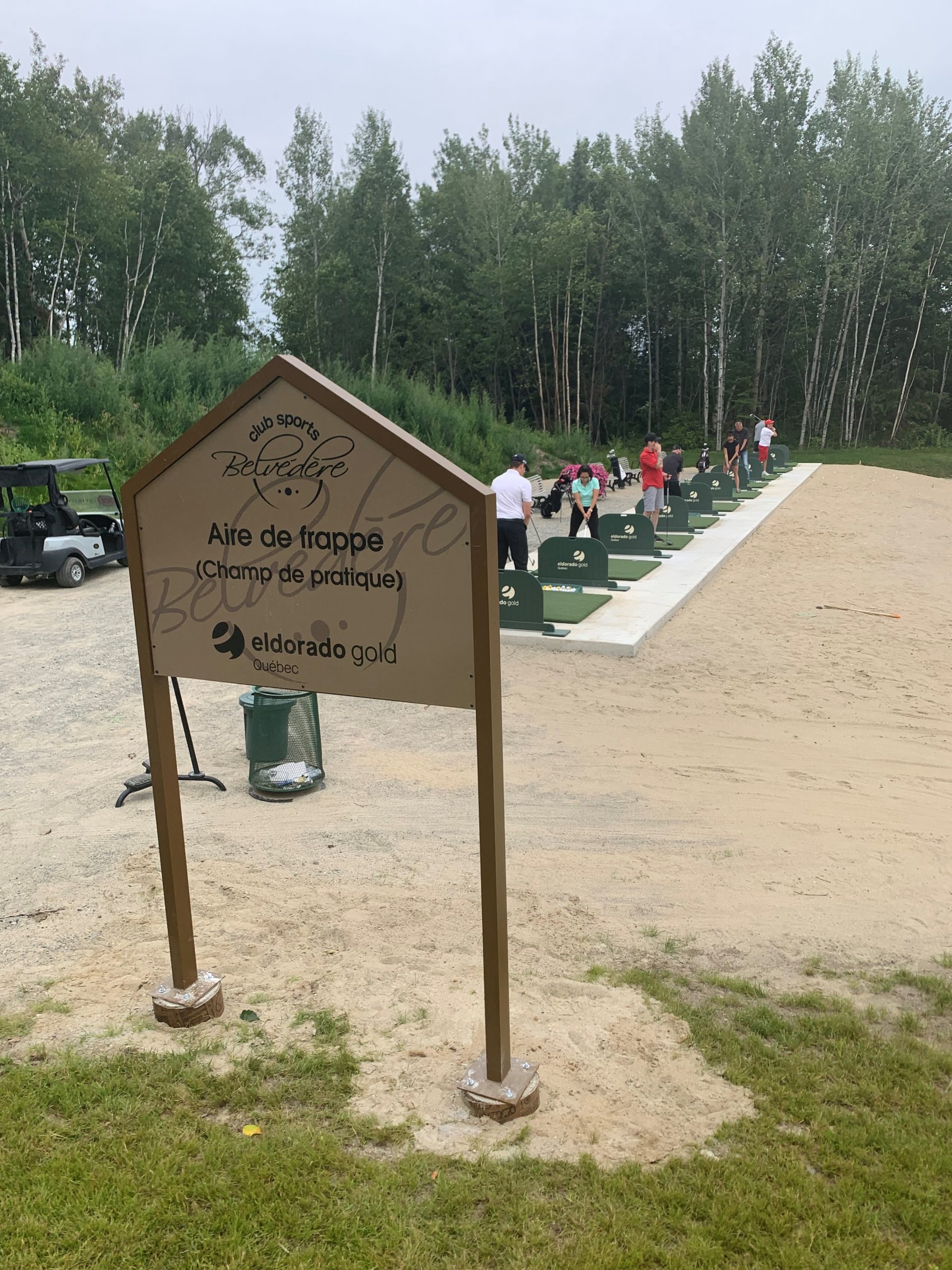 Eldorado Gold Québec s’est associé au Club Sports Belvédère pour l’aménagement d’une nouvelle aire de frappe de balles. D’importantes rénovations du champ de pratique ont été effectuées. Agrandissement, ajout d’une dalle de béton pour y accueillir une douzaine de postes de frappe, des tapis neufs artificiels ainsi que des séparateurs entre chaque poste ont été aménagés. Ce projet vise à rendre le champ de pratique accessible à toute la population de la Ville de Val-d’Or, débutants ou golfeurs expérimentés, en particulier aux jeunes, et également d’en faire un lieu plus sécuritaire pour les utilisateurs.