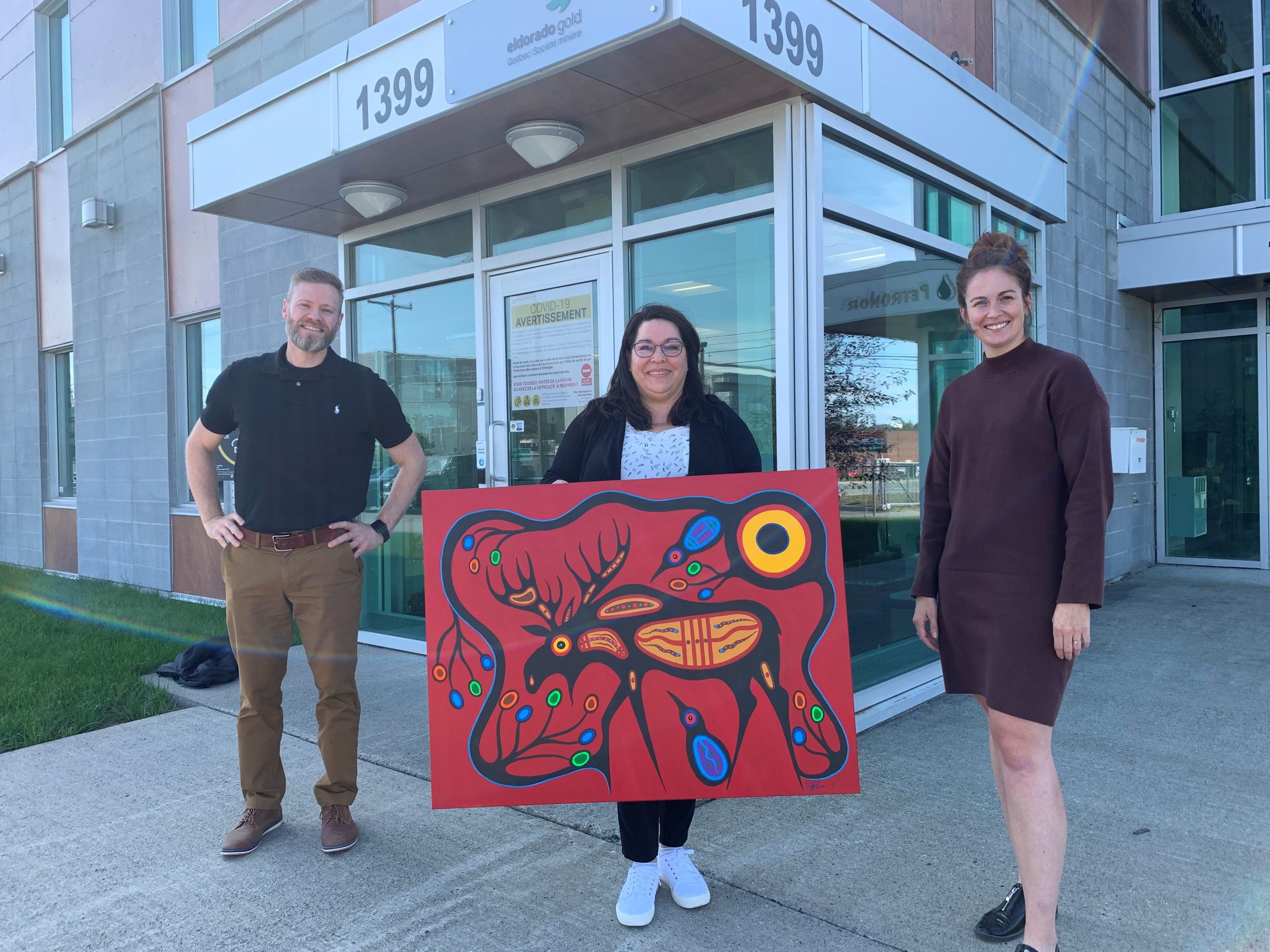 Le 9 septembre, Eldorado Gold Québec participait au Tournoi de golf des directeurs mines au profit de Centraide Abitibi Témiscamingue et Nord-du-Québec. À l’occasion de l’encan tenu en soirée, Eldorado a fait l’acquisition de l’œuvre « Bull Moose » de l’artiste anishnabe originaire de Long Point First Nation, Frank Polson.