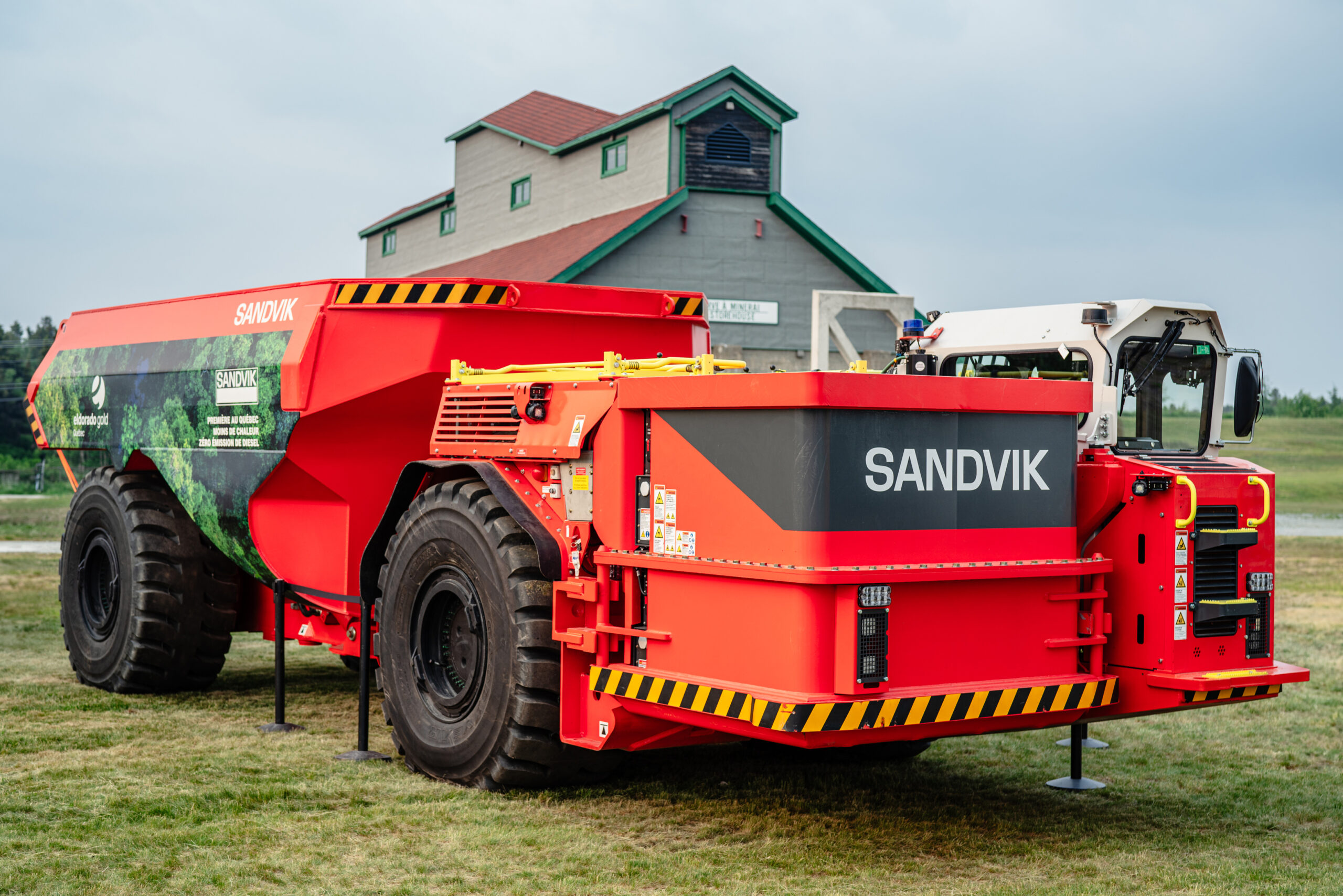 Eldorado Gold Québec est devenue la première entreprise minière au Québec à intégrer un camion électrique TH550B de la compagnie Sandvik dans sa flotte au cours de 2023. Ce camion, d’une capacité maximale de 50 tonnes, joue un rôle clé dans l’amélioration de l’efficacité de la production, la protection de la santé et la sécurité des travailleurs, mais surtout pour l’atténuation de nos émissions de gaz à effet de serre (GES). En 2023, ce sont deux camions qui ont été acquis par l’entreprise.